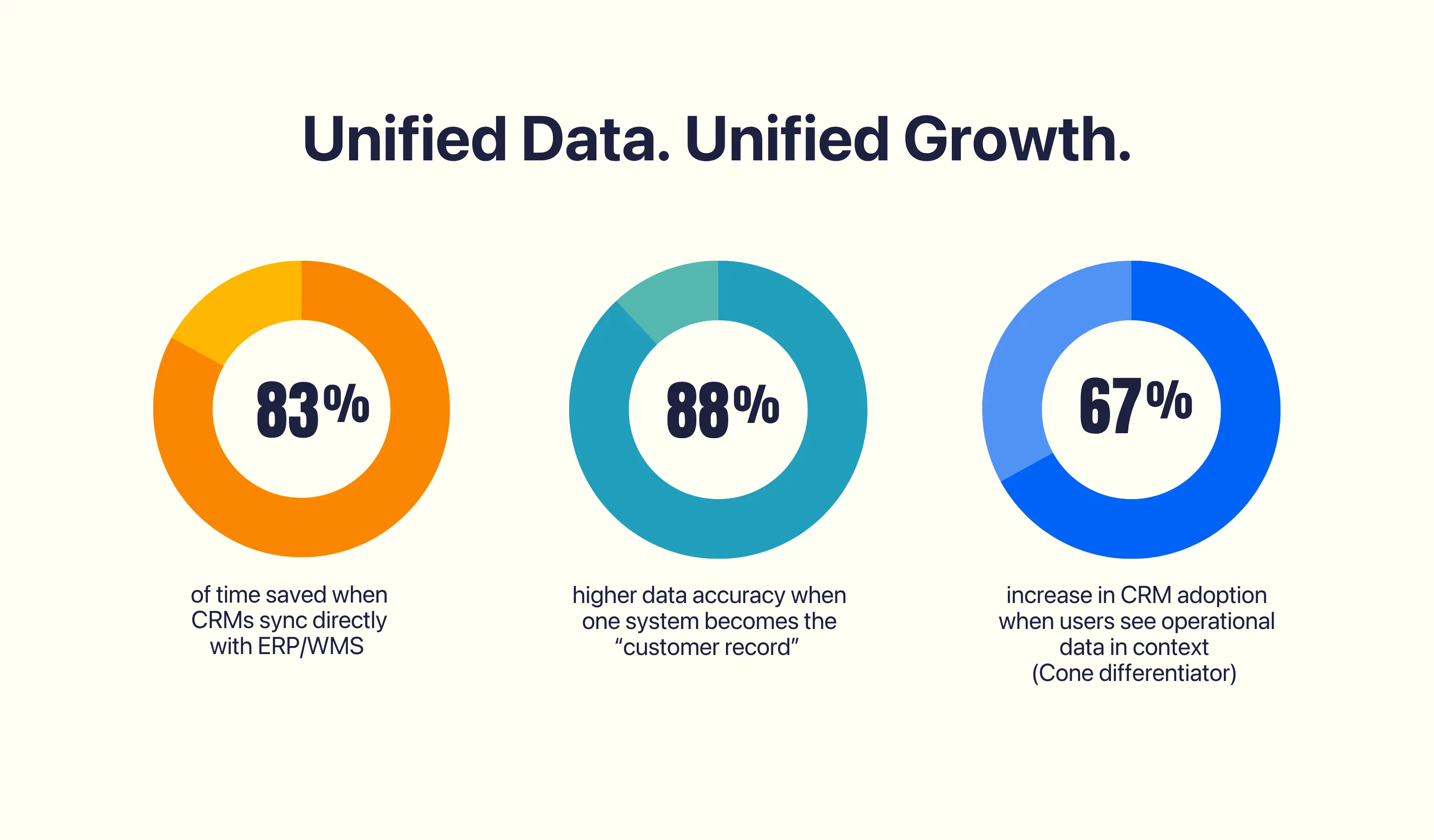 Unified data eliminates friction. Reps see value in the CRM, leaders gain confidence in their decisions, and customers experience faster, more consistent service.