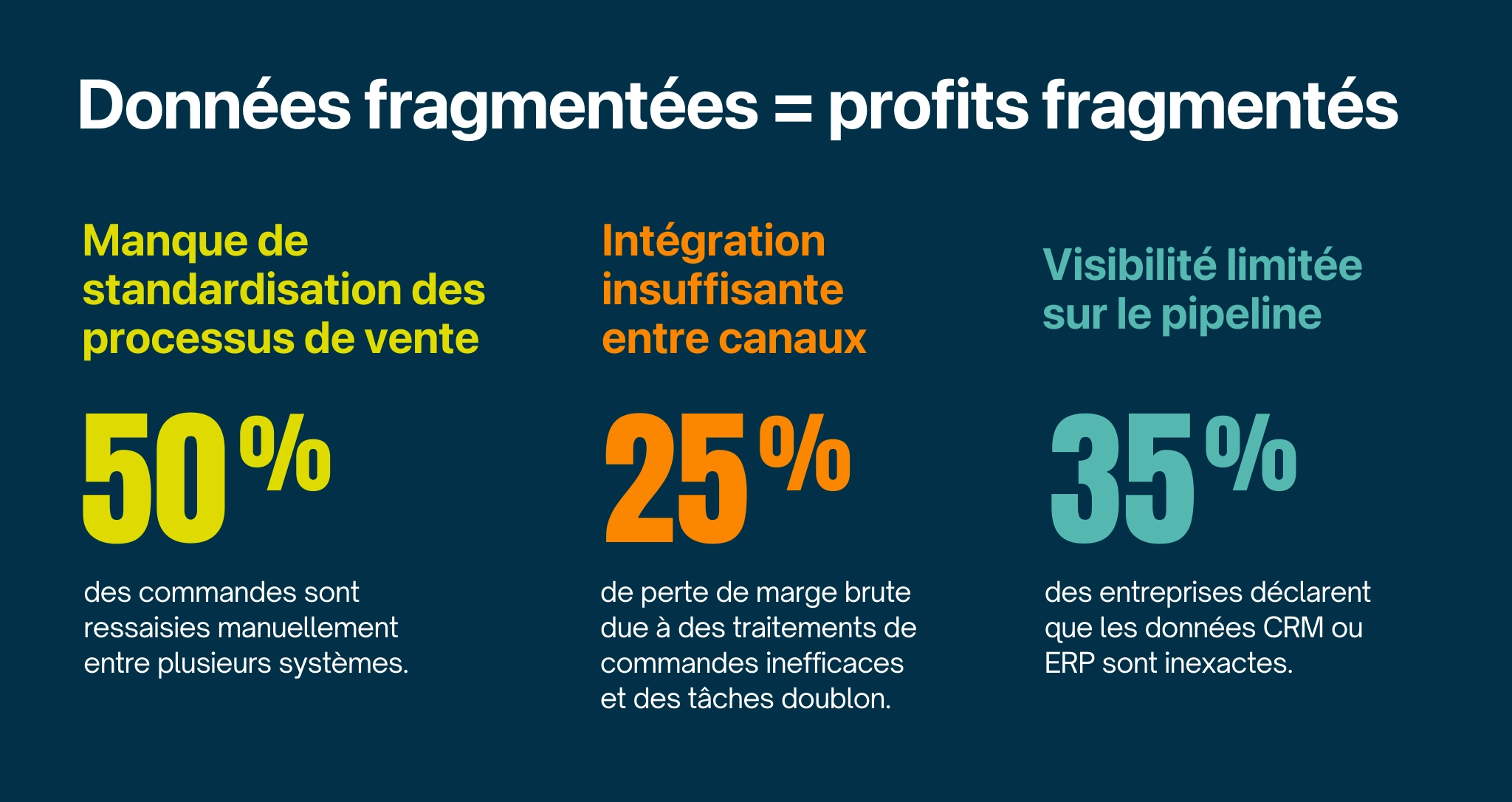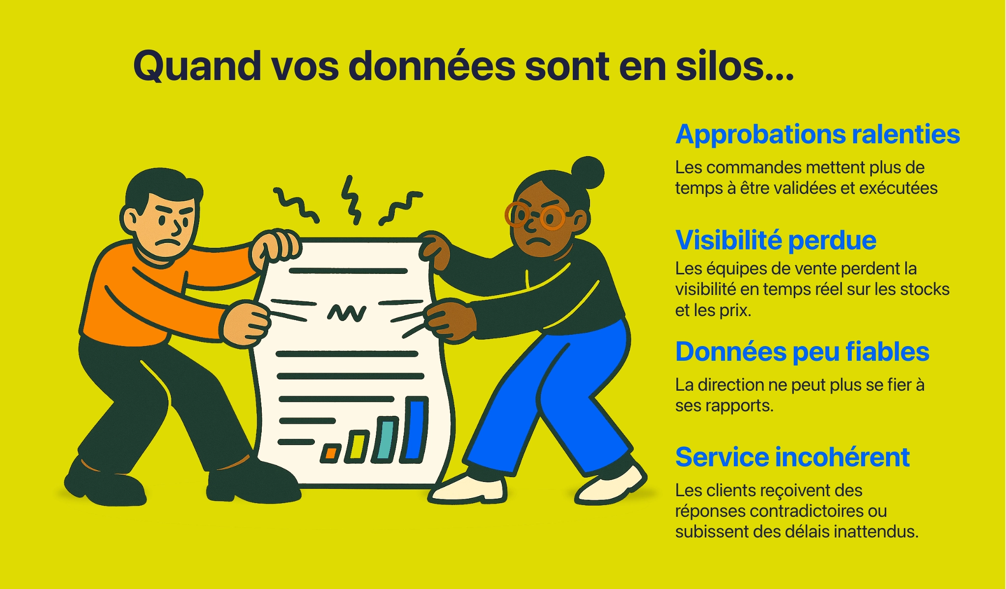 - Silos départementaux où ventes, logistique et finance gèrent leurs propres données.