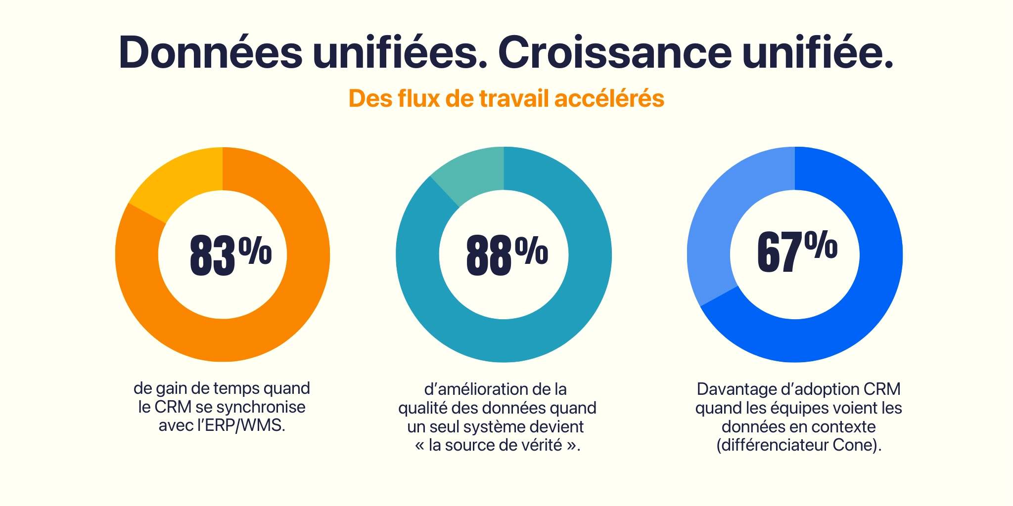 - 67 % d’adoption CRM en plus lorsque les utilisateurs voient les données opérationnelles en contexte.